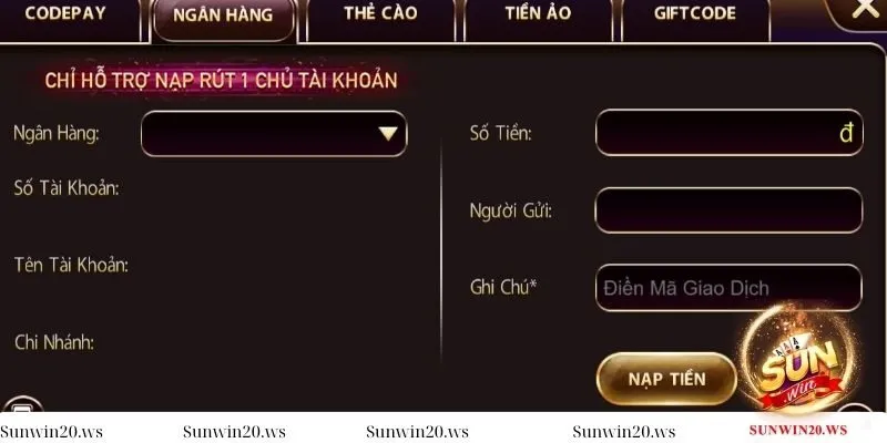Nạp tiền Sunwin qua ngân hàng